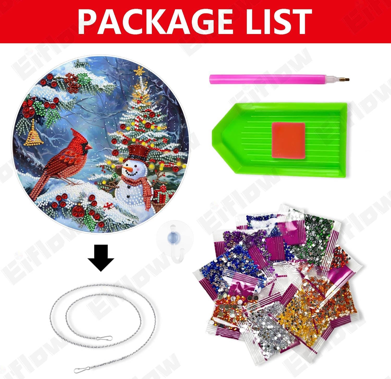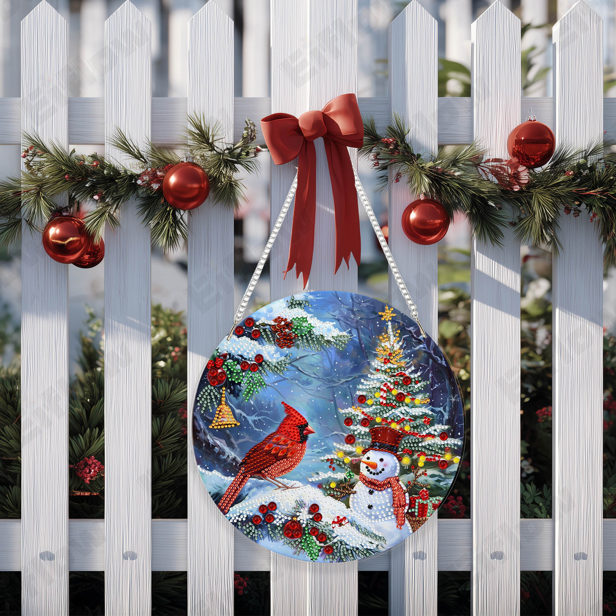 Hanging Pendant, Christmas Snowman and Cardinal