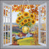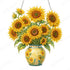Sunflowers in an elegant vase, detailed with yellow petals and green leaves